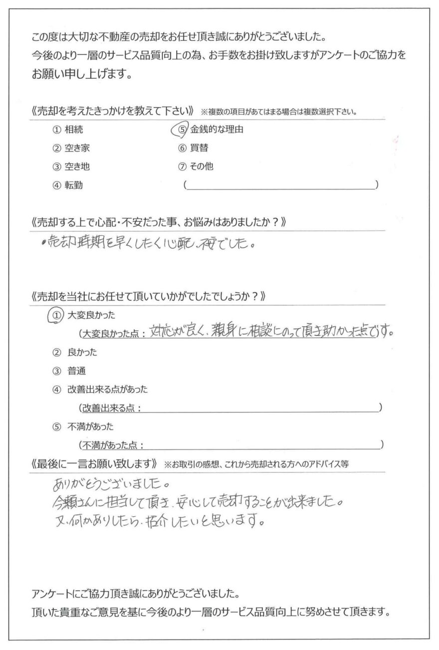 今瀬さんに担当して頂き、安心して売却することが出来ました。