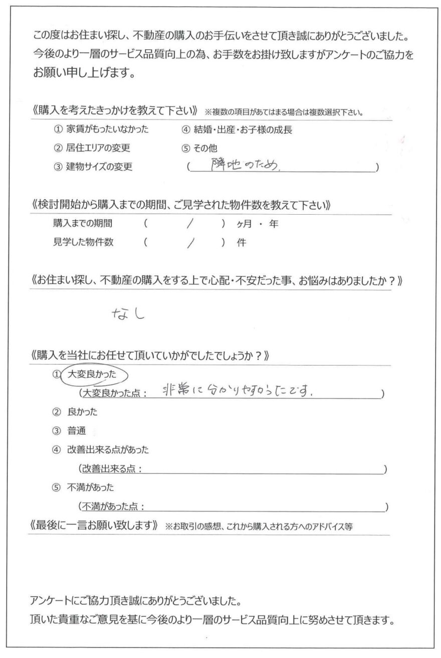 ソーシンサービスでは、弊社で不動産売買の仲介をさせていただいたお客様に任意のアンケートをお願いしております。